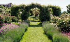 Sträucher, eine Laube, Trockenmauern oder ein Teich, vielleicht